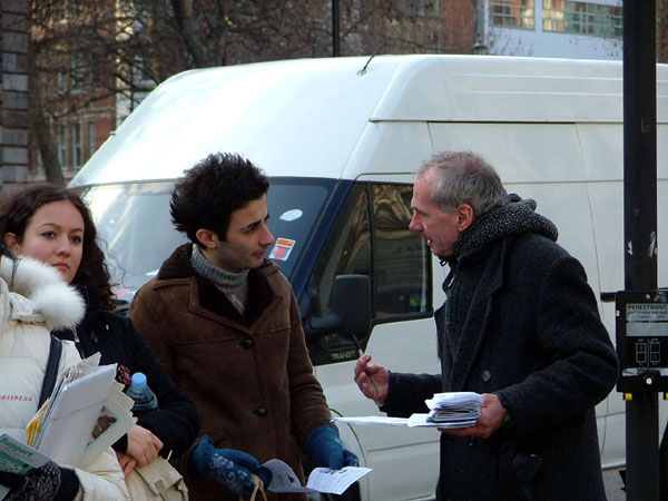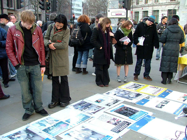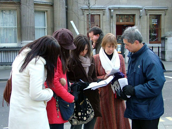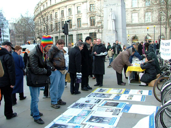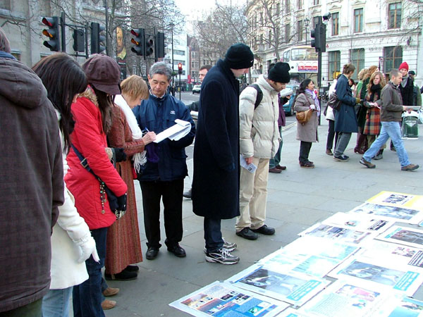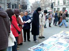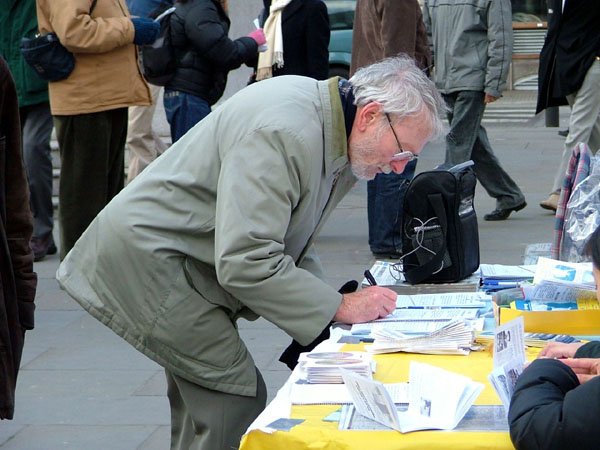 横幅和迫害真相图片吸引了许多过往路人驻足观看,许多路人表示,中共对法轮功的迫害图片令人惨不忍睹,集中营里的暴行令人发指。了解真相的人们纷纷在征签表上签名。征签表将会在3月21日被递交到英国首相府,敦请英国首相和英国政府强烈谴责中共当局对法轮功的迫害,帮助制止在苏家屯集中营里的大规模屠杀和器官摘取,提交联合国彻查该事件,营救正在被迫害的法轮功学员。