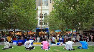 当天傍晚,人们前往市中心观看运动会开幕式和焰火表演,街道上人潮如海,人们纷纷接过传单,观看揭露中共酷刑迫害法轮功学员的真相展板,向学员了解目前的情况等。学员们不间断的接力前往洪法点上讲真相和功法演示,呼吁全球有良知的民众共同谴责制止中共暴行。