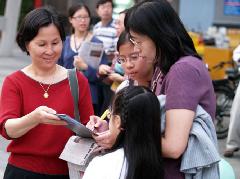 ![]() 一家三口看了真相展板后,全部签下自己的名字,正义支持制止中共继续行恶 | ![]() 父亲手抱着娃儿也要签名制止中共的兽行 |