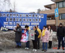 学员还对中使馆的工作人员喊话并递送公开信,希望他们认清中共的邪恶本质,为自己的未来负责。