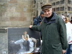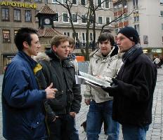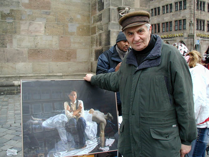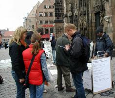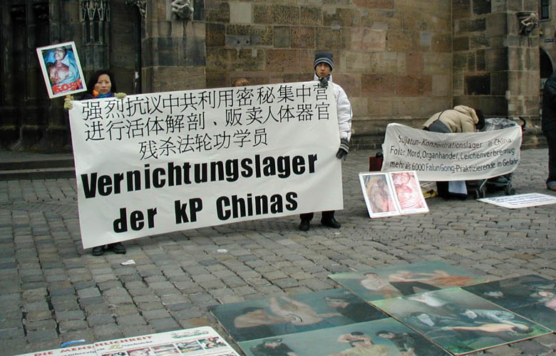 2006年3月18日,在德国南部城市纽伦堡(Nuernberg)圣劳伦斯教堂前,法轮功学员集会抗议中共设集中营,虐杀、出售法轮功学员器官的非人行径,在中德文横幅上将这一令人发指的消息昭示天下,法轮功学员张源并以绝食24小时来抗议。
