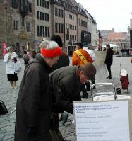 纽伦堡的民众对中共的卑劣行径纷纷谴责,两位签名的妇女认为,集中营在德国曾经出现过,这种历史不能再重演,现在在中国又出现了,我们必须制止它。高中女生希望集中营解体,她们认为所发生的事情令人毛骨悚然。来自台湾的陈先生说:“这种不人道的行为不应该再继续了,不应该残害自己的同胞,即使是身为台湾人、生活在德国,还是觉得这种事情不人道。”