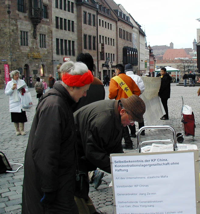 纽伦堡曾是希特勒的大本营,二战结束后,纳粹战犯在纽伦堡被审判。老一辈的德国人对此记忆犹新。很多人看到中共的行径,自然联想到纳粹集中营和焚化炉,他们对中共的暴行感到震惊和愤怒,认为中共比法西斯还卑劣,无法理解这种沾满鲜血的钱中共是怎样拿来使用的。