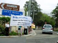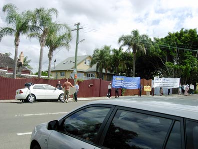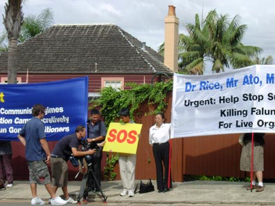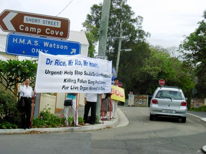 3月17日,悉尼学员得知正在澳洲访问的美国国务卿赖斯将于次日与澳洲外长唐纳和日本外相麻生太郎在悉尼某海军基地举行三方会谈后,立即向警方申请抗议许可并得到批准,学员提前到地处偏远的基地進行实地考察,并连夜赶制横幅。