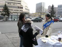 ![]() 学员在街头征签、紧急救援沈阳苏家屯集中营中的同修 | ![]() 两位两位亚裔小姑娘在了解真相 |