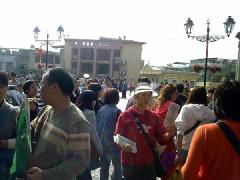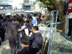 人们专注的观看真相展板  人们专注的观看真相展板 |   法轮功学员在市区及旅游点发放真相资料 |