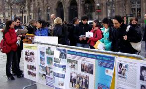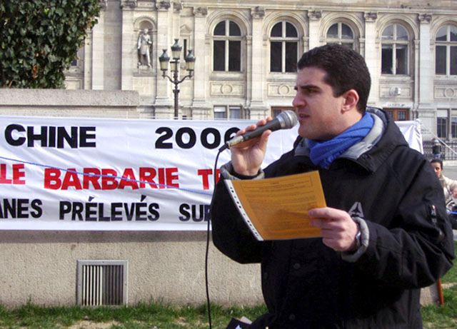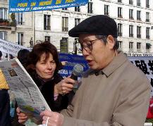 ![]() 法轮功学员代表奥利维埃揭露中共暴行 | ![]() 中国民主党法国分部副主席姜有陆发言 |
