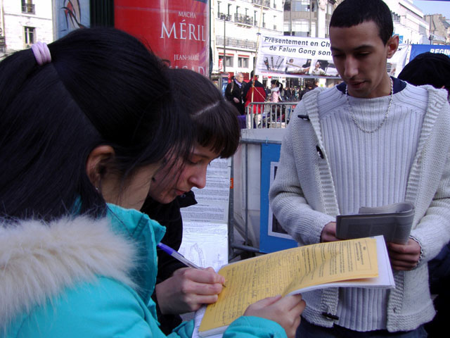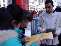 真相展板吸引了一群中学生驻足阅读,当他们了解到中共迫害信仰“真善忍”的法轮功学员,以及在苏家屯发生的,在法轮功学员身上活体窃取器官焚尸灭迹的事,其中一位中学生说:“这太恶了!人们应该有言论和信仰的自由。我签字帮助那些在集中营的人。我觉的集中营的存在是令人难以容忍的。”这些学生都纷纷签名表示支持法轮功。
