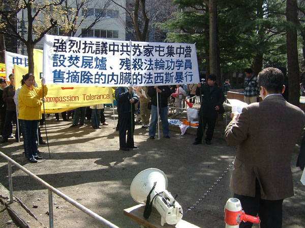 日本法轮大法学会代表鹤园说,“追.查!国际本月15日公布调查报告证实:在辽宁省沈阳市苏家屯区,存在一个庞大的人体器官‘市场’。从‘器官供体’的死亡集中营、组织配型、手术摘取、尸体处理,到使用器官的医院,形成了程序化操作。被摘取器官的法轮功学员处于完全封闭的状态,摘取器官后被焚尸灭迹。中共兽行无以复加,人神共愤。我们强烈谴责中共兽行,支持退出中共的中国民众觉醒运动。”