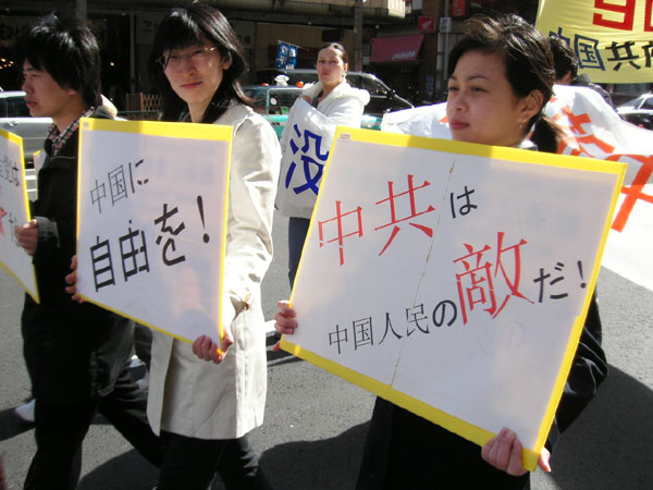 ![]() 游行队伍行進中 | ![]() 中共是中国人民的敌人 |