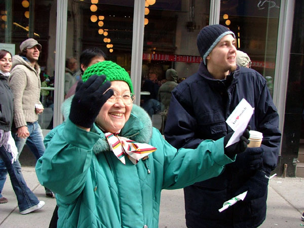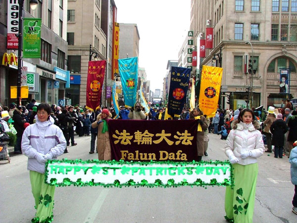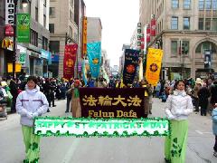 今年是法轮功学员第4次参加圣帕翠克节(St-Patrick)游行,功法演示早已给人们留下深刻的印象,沿途许多人不断的模仿功法动作。法轮功学员组成的腰鼓队,伴随着法轮大法好的音乐,向人们传递美好、幸福。舞姿翩翩的仙女队,更是令人们赞不绝口:“太美了!”