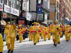![]() 法轮功学员的游行队伍 | ![]() 腰鼓队 |