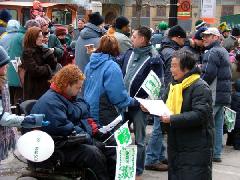 ![]() 热情的观众 | ![]() 法轮功学员发放资料 |