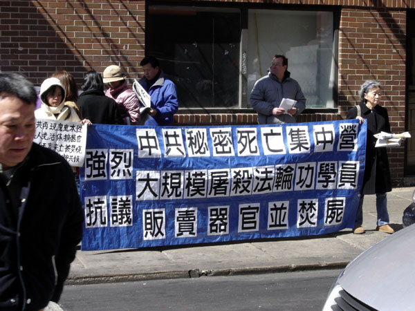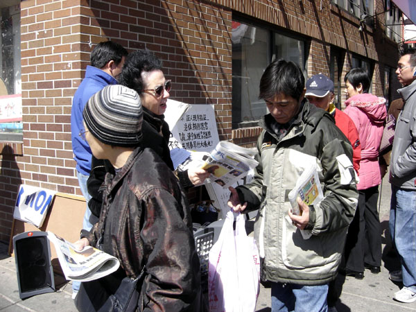 2006年3月18日早上,来自南泽西的西人尼娜女士来到费城中国城,在寒风中伫立了4个多小时,向过往的路人派发“苏家屯集中营的真相”。人们无不为法轮功学员遭到的惨烈迫害而动容。