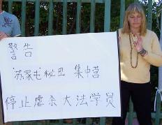 【明慧网2006年3月25日】2006年3月23日上午,南非开普敦大法学员来到中领馆前宣读《法轮大法学会公告》,抗议中共集团灭绝人性的杀害大法弟子,盗取人体器官牟取暴利、焚尸灭迹的兽行。