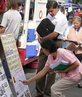 活动,揭露和制止中共在沈阳苏家屯集中营虐杀法轮功学员是本周的征签主题。当人们了解了中共在苏家屯杀害法轮功学员,并从活体上盗取器官,随后焚尸灭迹的事实真相后,大为震惊,纷纷主动签名支持反