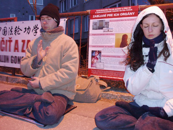 【明慧网2006年3月25日】惊闻中共苏家屯集中营虐杀法轮功学员的血腥事实后,2006年3月24日,斯洛伐克法轮功学员举办活动抗议中共暴行,并将此事通知了所有主要媒体。