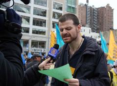 纽约居民、美国歌手Demetrios Andrianis在曼哈顿街头被“天国乐团”的演奏深深震撼,他一直跟随着游行队伍来到集会现场。听了法轮功受迫害的真相及发生在苏家屯的残酷暴行,他震惊了,当场谱写了一首歌曲表达对中共暴行的愤怒。他说,这是他发自灵魂深处的心声。他在歌词中写道: