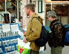 前来购物的人纷纷驻足观看横幅和图片,看过的人震惊不已。当学员问到,为了制止迫害您能签名吗?人们回答,“当然,我当然要签。” “我们也要签。”