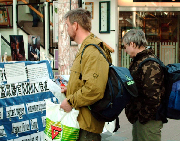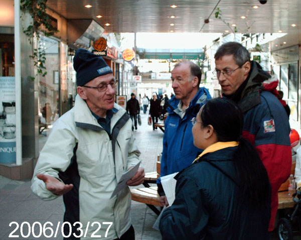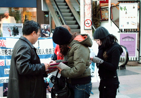 挪威法轮功学员从2006年3月13日开始,每天下午三点到五点都要去搏德市商业中心讲真相、发传单、征签,揭露中共设立集中营杀害法轮功学员并盗取人体器官出售的群体灭绝罪行。
