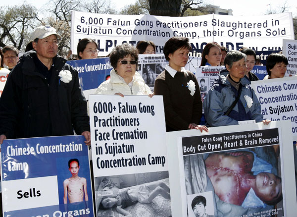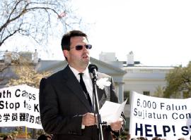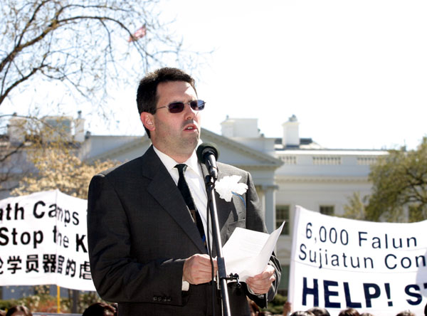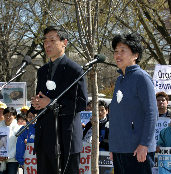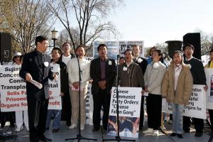 华盛顿法轮大法学会发言人陈钧代表华盛顿特区法轮大法学会,美东法轮大法佛学会(纽约),新英格兰法轮大法学会,美中法轮大法学会(芝加哥),美西法轮大法学会(旧金山),美东南法轮大法学会(亚特兰大),美南法轮大法学会(休斯顿)七个美国法轮大法学会在集会上敦促美国政府调查并帮助制止苏家屯暴行。