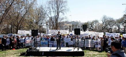集会在“法轮大法好”的歌声中结束。集会结束后,法轮功学员代表向白宫递交在过去的几天里征集到的数千人的签名。