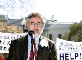 全球反迫害人权组织执行长,美国人权律师,法律教授斯克拉先生(Morton Sklar)说,“我刚刚听到远处的教堂钟声响起,令我心动,这让我回想起经常提出的这个问题‘丧钟为谁而鸣’,我们必须告诉世界,当种族灭绝发生的时候,丧钟为我们所有的人而鸣,我们都将成为种族灭绝的目标。”