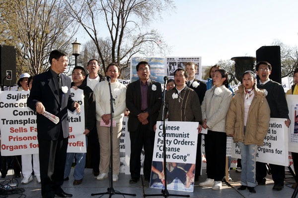 悲壮的歌声震撼人心,集会现场的许多法轮功学员肃然泪下。