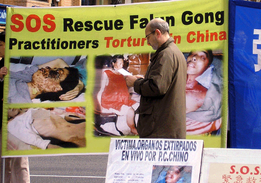 据知情人士指出,中共在沈阳苏家屯建立纳粹式集中营,秘密关押6千名法轮功学员,并虐杀、活取器官牟取暴利后焚尸灭迹的邪恶罪行曝光后,西班牙法轮功学员在中使馆前举行集会,强烈抗议中共这种惨绝人寰的暴行,并呼吁国际社会立即进行调查、制止虐杀和紧急营救正在中国遭受迫害的法轮功学员。