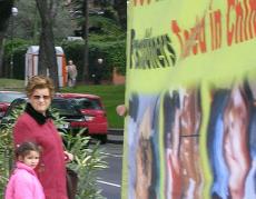 ![]() 这位先生长久的驻足观看揭露中共惨绝人寰迫害法轮功学员的传单和图片,直至抗议活动结束方才离去 | ![]() 被中共恶行震惊了的孩子们 | ![]() 这名老妇人在看到图片后连连说“神会惩罚这些作恶的罪人的。” |