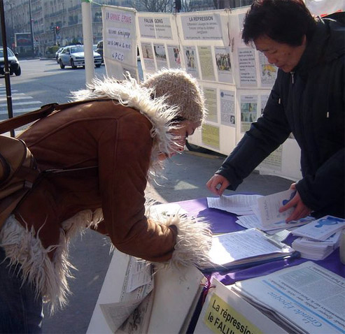 来自中国大陆的游客在法国看到法轮功学员自由的炼功,很惊异。他们默默的看着,在揭露中共恶党秘设苏家屯集中营的图片前停留,从他们惊讶表情中可以看到他们内心的震动。