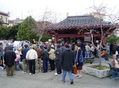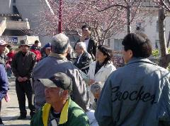 中国城里有很多老华侨,有各种社团、公所、会馆,当地学员意识到应该和这些团体建立友好关系、讲清真相,所以3、4 人一组沿街拜访。即使在花园角气势汹汹的人,当法轮功学员礼貌善意的登门问候时,都客气多了。没有见到面的,留下一份真相报纸,改天再造访。