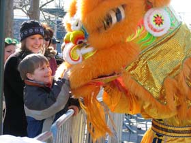 ![]() 西人小观众对舞狮充满好奇 |