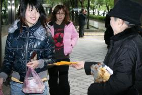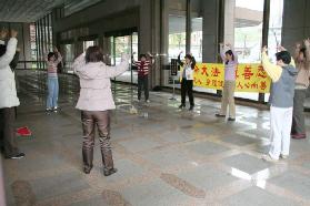 台湾台北中央联合办公大楼炼功点的法轮功学员于2006年3月1日中午举办炼功洪法活动,向大楼内、外上班的同仁及前来洽公的民众发送真相资料,并介绍法轮功之美好与洪传世界概况。
