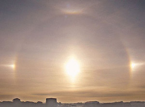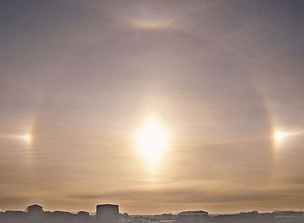 据市气象局观测科的王工程师介绍,这种天象也叫“耀日”、“假日”或“虚像”,有时人们眼中会有3个、4个甚至5个太阳。由于形成此种天象的条件非常苛刻,所以这种天象确属奇观。