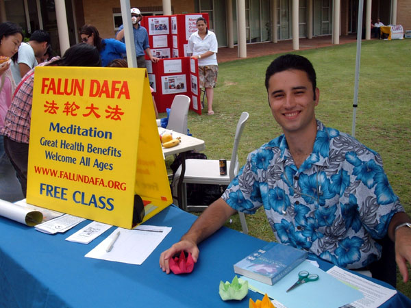 当功法示范开始的时候,整个场变得非常祥和,更多人来到摊位前了解大法,并登记参加即将举办的功法学习班。一些了解迫害真相的人主动上前,得知学生代表委员会(University Student Representative Council)通过了决议案支持法轮功、谴责迫害后,大家表示欣慰。