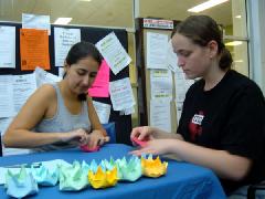 法轮功学员们布置了展位,发资料,介绍功法,示范叠纸莲花并免费发放。纸莲花很受欢迎,不少人赞叹着莲花这一东方文化中纯洁高尚的标志,在现场学习叠的方法。学员们解释了制作纸莲花的原因,是因为莲花出淤泥而不染,象征着法轮大法修炼者的境界。
