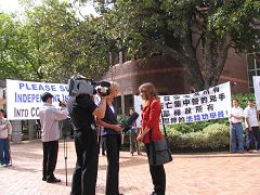 【明慧网2006年4月10日】2006年4月7日—4月9日,亚欧财经部长会谈在奥地利维也纳举行。这个会议是25个欧洲国家和包括中国在内的13个亚洲国家的财经部长高峰会。法轮功学员于7日晚和8日、9日上午,分别在位于总统府Hofburg的正门外和与会车辆必经的广场上举办信息日,和平抗议中共迫害法轮功的暴行,尤其是在苏家屯等集中营活体摘取学员器官并焚尸灭迹的罪恶。