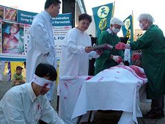 ![]() 模拟苏家屯集中营活体摘取法轮功学员器官的街头表演 | ![]() 真不敢相信这是真的! |