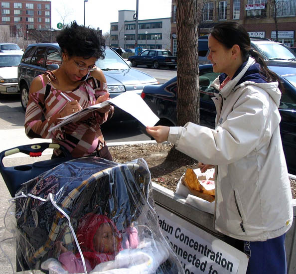 从本周一(4月10日)开始,多伦多法轮功学员分别在前外交部部长、现自由党代党魁比尔•格雷厄姆(Bill Graham)和新民主党党魁杰克•林顿(Jack Layton)的选区办公室门前请愿、征集选民签名,敦促加拿大政府站出来谴责中共各劳教所活体摘除法轮功学员器官的罪行,并立即行动展开调查。