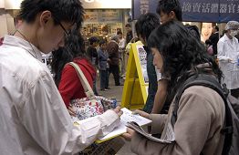 【明慧网2006年4月16日】2006年4月16日,法轮功学员分别在香港的两个行人专用区设立了揭露中共