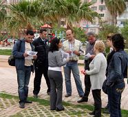 在临海宽阔的和平广场上,周末闲散漫步的当地人以及来这里旅游度假的游客人来人往、络绎不绝。参加活动的学员们,一部份在优美祥和的炼功音乐声中,向人们展示法轮功舒缓柔美的功法,一部份向往来的人们派发真相传单,另一部份则向想進一步了解真相的人们讲述法轮功在中国所遭遇的残酷迫害,以及中共恶党如何秘密杀害法轮功学员、活体摘器官并随时焚尸灭迹的罪行。