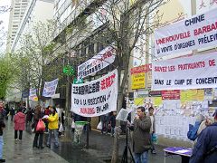 ![]() 法国学员在巴黎举行集会征签活动词抗议中共暴行 |