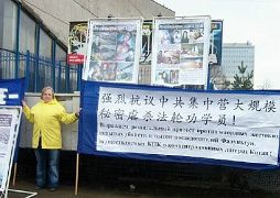 有一位老者走过这里,看过横幅和真相展板,感慨的说:“只要有共产党的地方,都会有这样的屠杀!”他问学员:“你们搞这样的活动目地是什么呢?”学员说:“我们要把中共的罪恶向世界曝光,呼吁国际社会参与调查和制止这种反人类的罪行。”老人听完说:“你们做的对。”