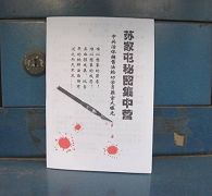 ![]() 张贴在龙潭公园电话厅里的不干胶《大.纪.元;郑重声明》 | ![]() 放在龙潭公园电话厅里的小册子《秘密集中营――中共活体摘售法轮功学员器官大曝光》 |