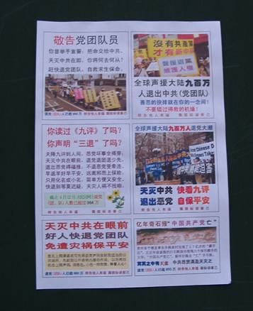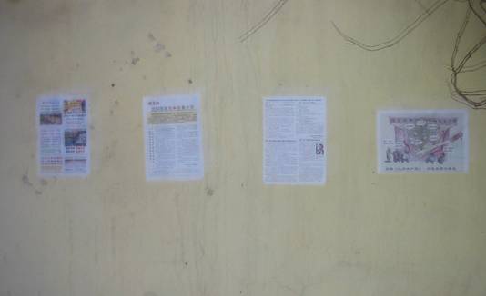 为了让居民一出家门就能看到真相资料,我们把各种真相资料投放、张贴到社区。