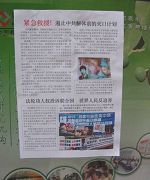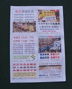 ![]() 张贴在食品街报栏上的不干胶《大.纪.元;郑重声明》和三:退.签名单,供购物者签名 |