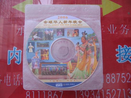 ![]() 贴在馒头巷报栏上的光盘《2006年全球华人新年晚会》 | ![]() 贴在馒头巷广告栏上的光盘《2006年全球华人新年晚会》 |