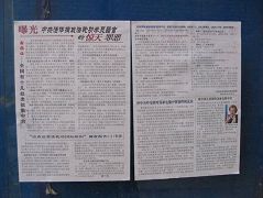 ![]() 贴在馒头巷广告栏上的不干胶《紧急救援!遏止中共解体前的灭口计划》等 | ![]() 张贴在开化寺广告栏里的不干胶《曝光中共活体摘取法轮功学员器官的惊天罪恶》等 |