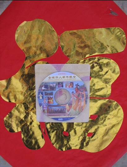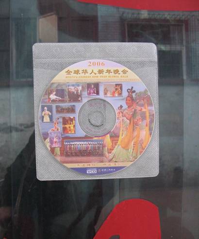 ![]() 贴在奶生堂社区住户门上的光盘《2006年全球华人新年晚会》 | ![]() 贴在奶生堂社区住户门上的光盘《2006年全球华人新年晚会》 |